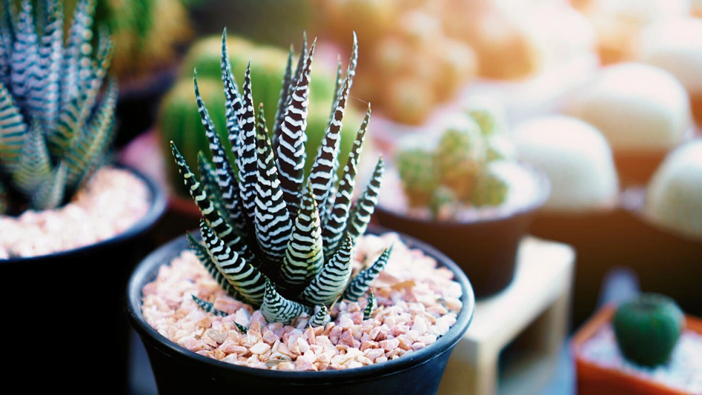 La Haworthia Zebra es una suculenta compacta y fácil de cuidar. Sus hojas gruesas y rayadas le dan un aspecto distintivo que la hace destacar en cualquier colección de plantas.